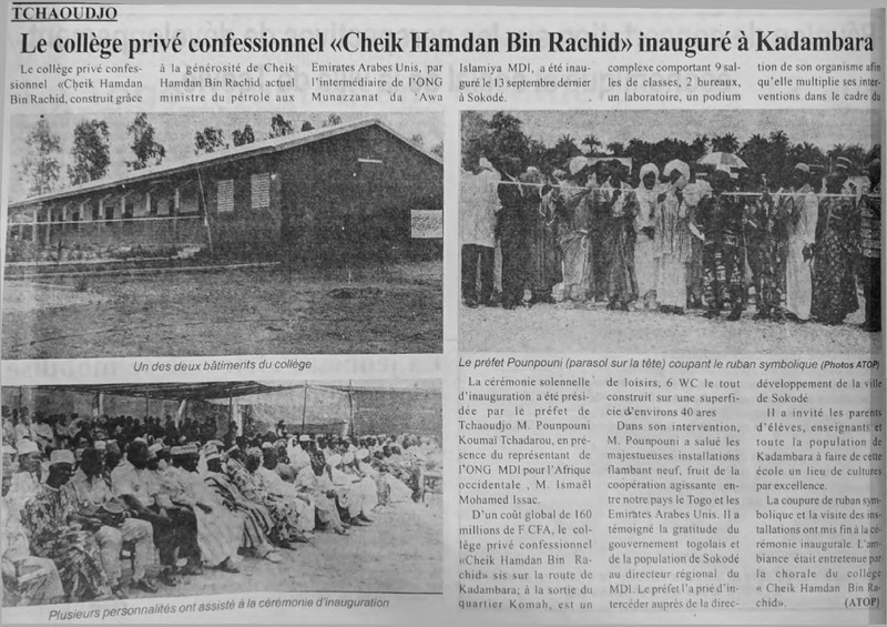 Tchaoudjo : le collège privé confessionnel "Cheik Hamdan Bin Rachid" inauguré à Kadambara