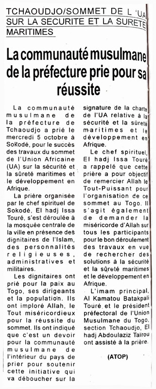 Tchaoudjo / sommet de l'UA sur la sécurité et la sûreté maritimes : la communauté musulmane de la préfecture prie pour sa réussite