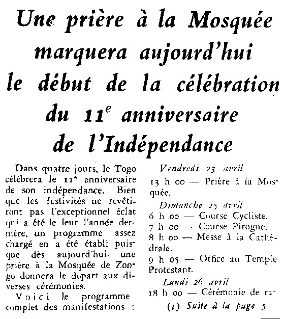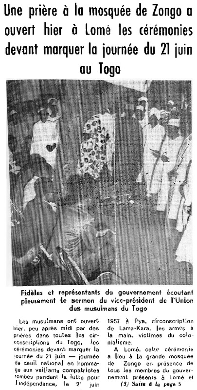 Une prière à la mosquée de Zongo a ouvert hier à Lomé les cérémonies devant marquer la journée du 21 juin au Togo