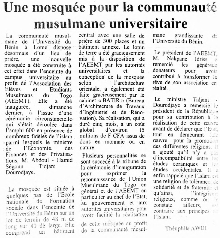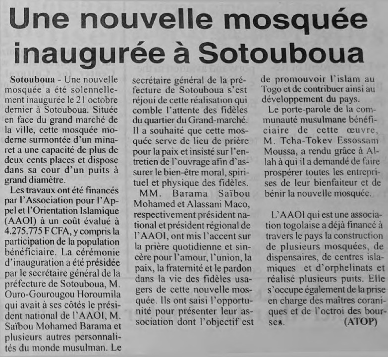 Une nouvelle mosquée pour la communauté islamique d'Atéda (Kara)