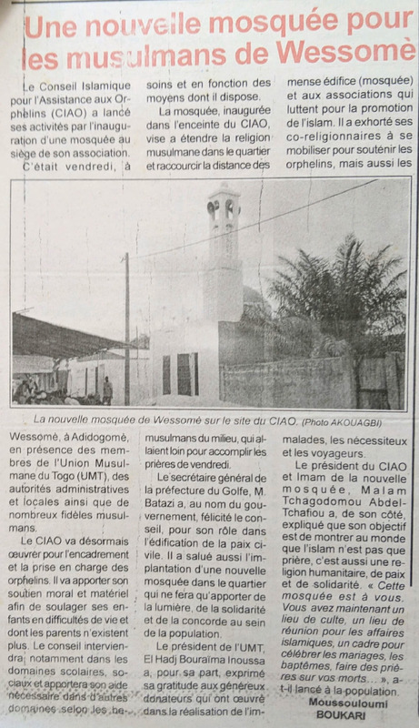 Une nouvelle mosquée pour les musulmans de Wessomè