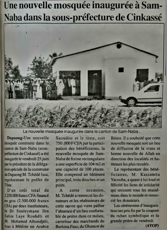 Une nouvelle mosquée inaugurée à Sam-Naba dans la sous-préfecture de Cinkassé