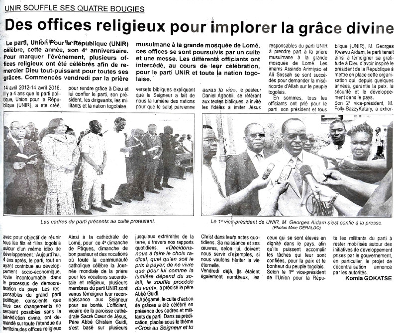 UNIR souffle ses quatre bougies : des offices religieux pour implorer la grâce divine