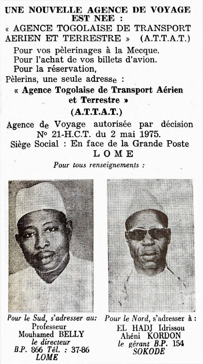 Une nouvelle agence de voyage est née : "Agence Togolaise de Transport Aérien et Terrestre" (A.T.T.A.T.)