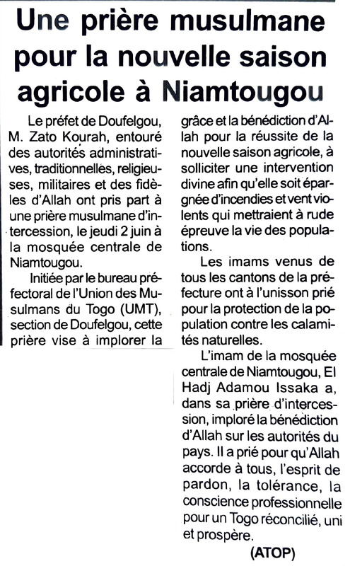 Une prière musulmane pour la nouvelle saison agricole à Niamtougou