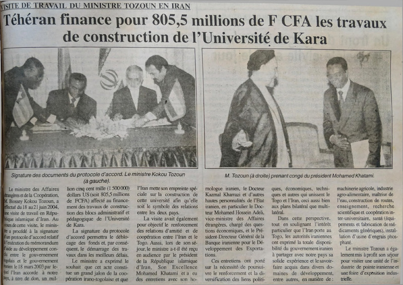 Visite de travail du ministre Touzoun en Iran : Téhéran finance pour 805,5 millions de F CFA les travaux de construction de l'Université de Kara