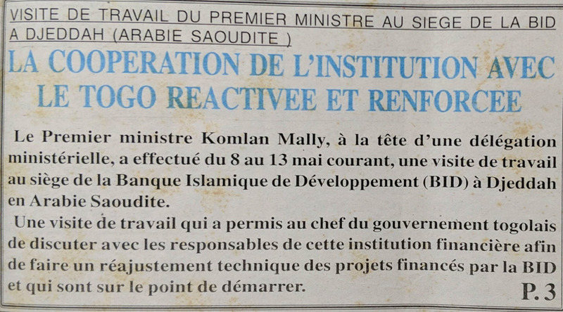 Visite de travail du Premier Ministre au siège de la BID à Djeddah (Arabie Saoudite) : la coopération de l'institution avec le Togo réactivée et renforcée