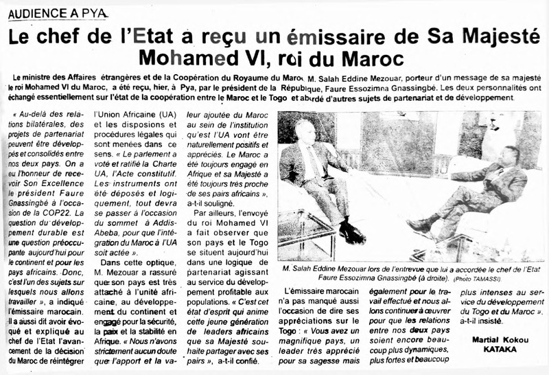 Audience à Pya : le chef de l'Etat a reçu un émissaire de Sa Majesté Mohamed VI, roi du Maroc