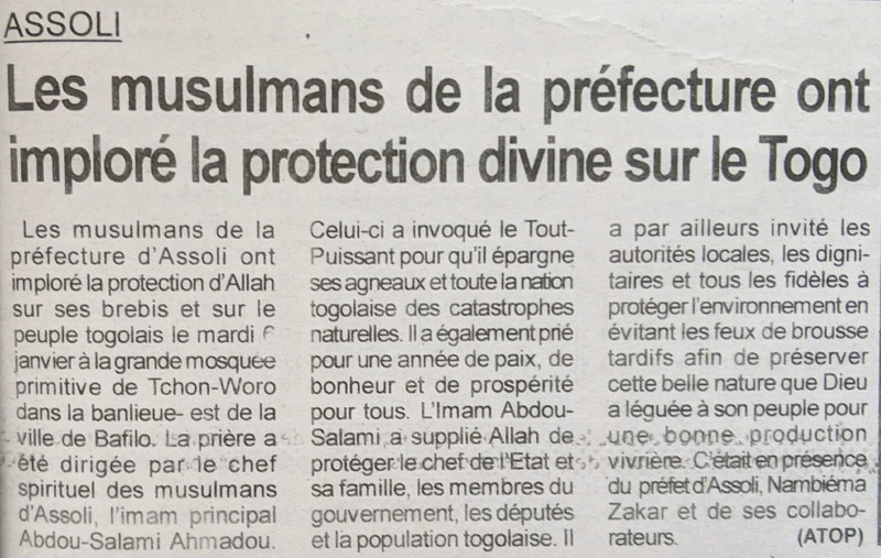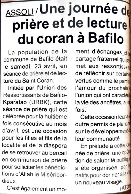 Assoli : une journée de prière et de lecture du coran à Bafilo