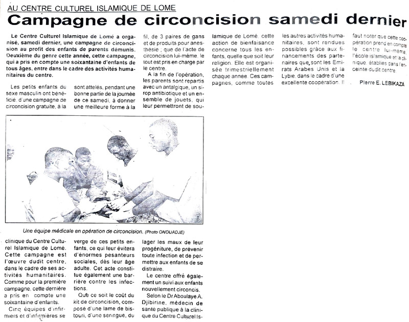 Au Centre Culturel Islamique de Lomé : campagne de circoncision samedi dernier