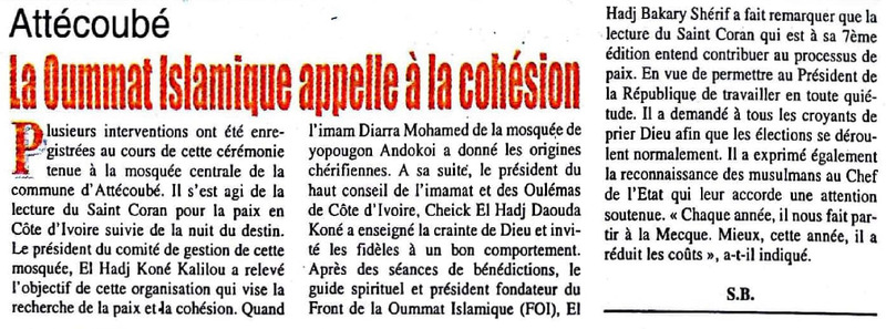 Assoli : les fidèles musulmanes et musulmans sensibilisés sur l'islam et la population