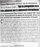 Situation socio-politique. Traoré Mamadou (Imam de la Mosquée de la Riviera Golf) : "Que les protagonistes de la crise collaborent avec la communauté internationale"