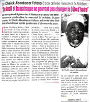 Le Cheick Aboubacar Fofana à son arrivée mercredi à Abidjan : "Le fusil et la matraque ne peuvent pas changer la Côte d'Ivoire"