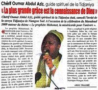 Chérif Oumard Abdul Aziz, guide spirituel de la Tidjaniya : "La plus grande grâce est la connaissance de Dieu"