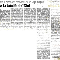 Lettre ouverte au président de la République : de la laïcité de l'État -