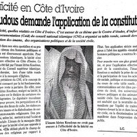 Laïcité en Côte d'Ivoire : Koudouss demande l'application de la constitution -