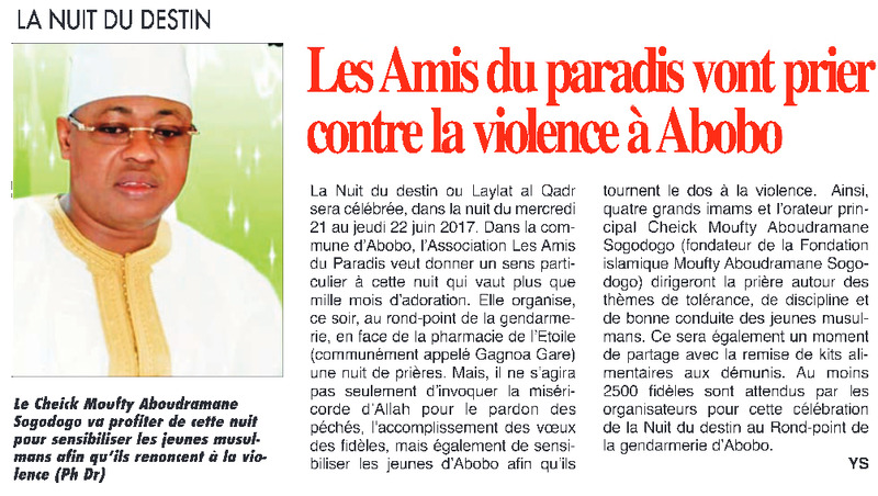 La nuit du Destin : les Amis du paradis vont prier contre la violence à Abobo