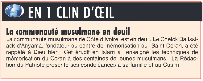 La communauté musulmane en deuil : le Cheick des Imams de Côte d'Ivoire est décédé, hier