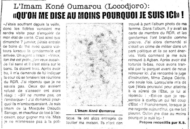 L'Imam Koné Oumarou (Locodjoro) : "Qu'on me dise au moins pourquoi je suis ici!"