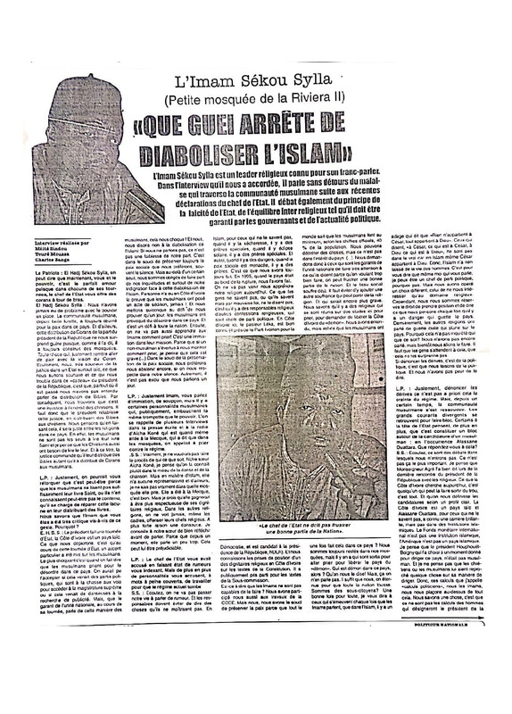 L'imam Sékou Sylla (Petite mosquée de la Riviera II) : "Que Guéï arrête de diaboliser l'islam"
