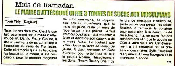 Mois de Ramadan : le maire d'Attécoubé offre 3 tonnes de sucre aux musulmans