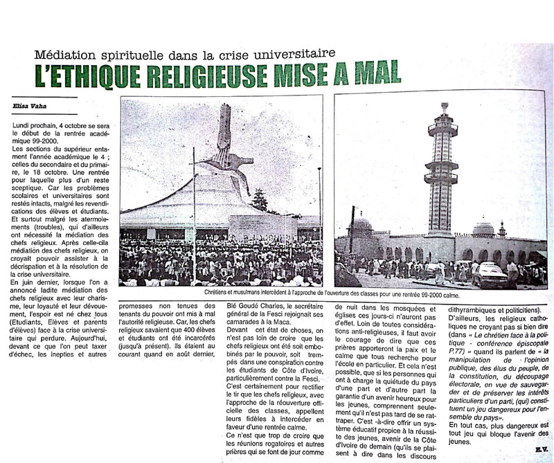 Médiation spirituelle dans la crise universitaire : l'éthique religieuse mise à mal