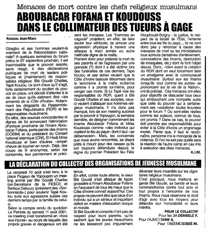 Menaces de mort contre les chefs religieux musulmans : Aboubacar Fofana et Koudouss dans le collimateur des tueurs à gage