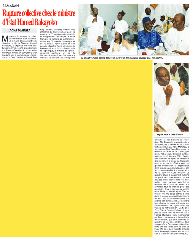 Ramadan : rupture collective chez le ministre d'État Hamed Bakayoko