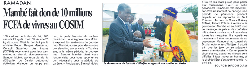 Ramadan 2010 : Koné Célestine fait des dons au nom du Dr ADO