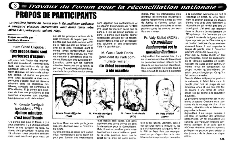 Propos de participants. Imam Cissé Djiguiba : "Les propositions sont porteuses d'espoir"