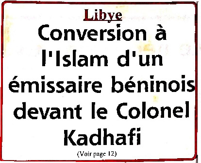 Libye-Bénin : un émissaire béninois se convertit à l'Islam devant le colonel Kadhafi