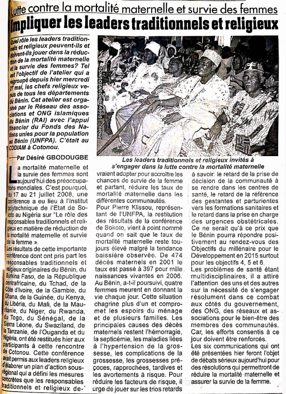 Lutte contre la mortalité maternelle et survie des femmes : impliquer les leaders traditionnels et religieux