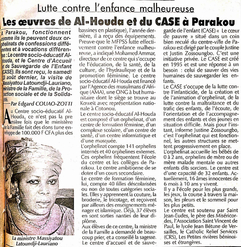 Lutte contre l'enfance malheureuse : les œuvres de Al-Houda et du CASE à Parakou