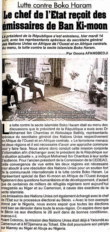Lutte contre Boko Haram : le chef de l'Etat reçoit des émissaires de Ban Ki-moon