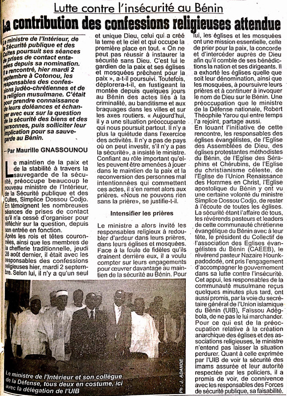 Lutte contre l'insécurité au Bénin : la contribution des confessions religieuses attendue