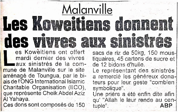 Malanville : les Koweitiens donnent des vivres aux sinistrés