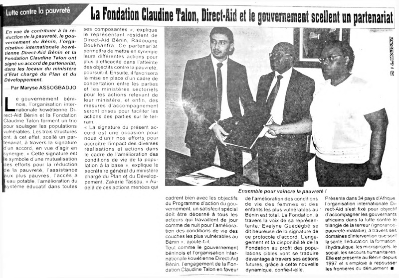 Lutte contre la pauvreté : la Fondation Claudine Talon, Direct-Aid et le gouvernement scellent un partenariat