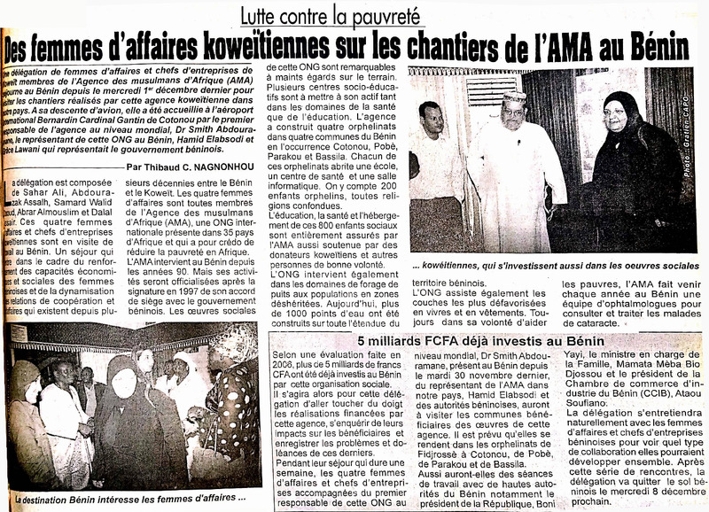 Lutte contre la pauvreté : des femmes d'affaires koweïtiennes sur les chantiers de l'AMA au Bénin