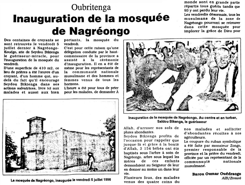 Oubritenga : inauguration de la mosquée de Nagréongo
