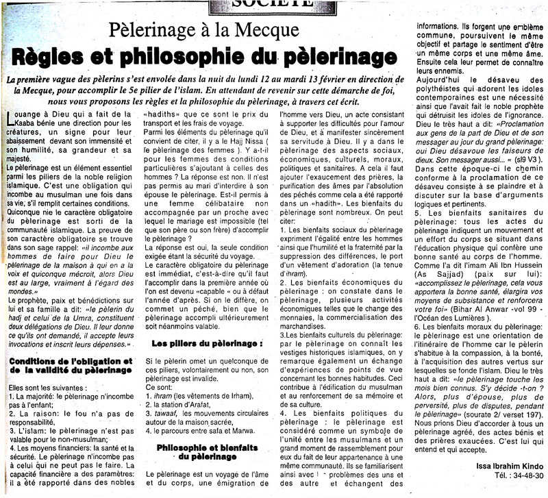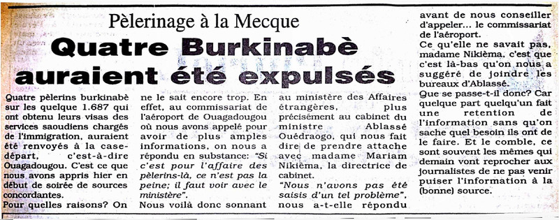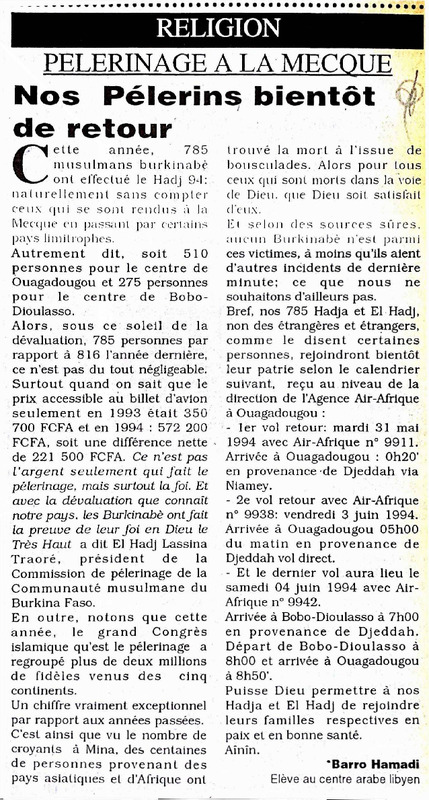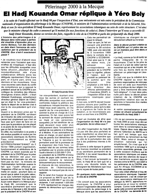 Pèlerinage 2000 à la Mecque : El Hadj Kouanda Omar réplique à Yéro Boly