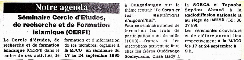 Notre agenda : séminaire Cercle d'Études, de recherche et de Formation islamique (CERFI)