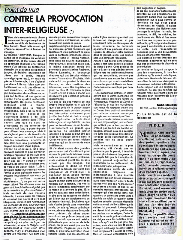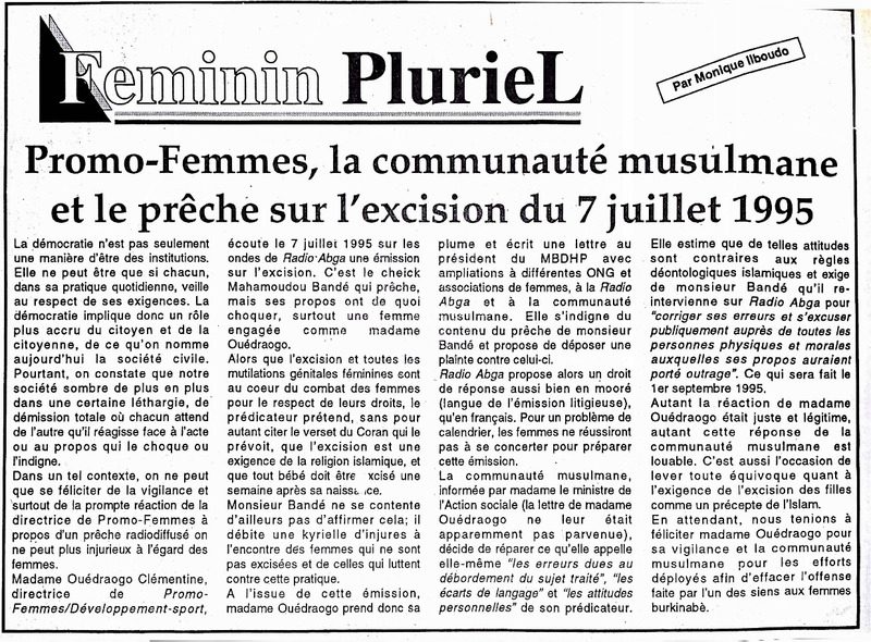 Promo-Femmes, la communauté musulmane et le prêche sur l'excision du 7 juillet 1995