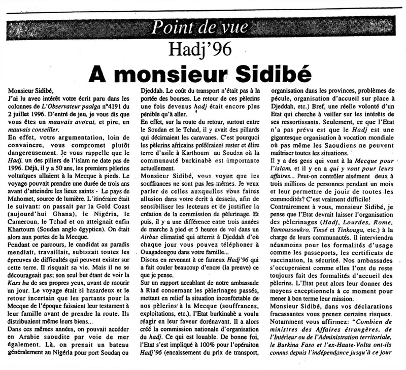 Point de vue. Hadj'96 : à monsieur Sidibé