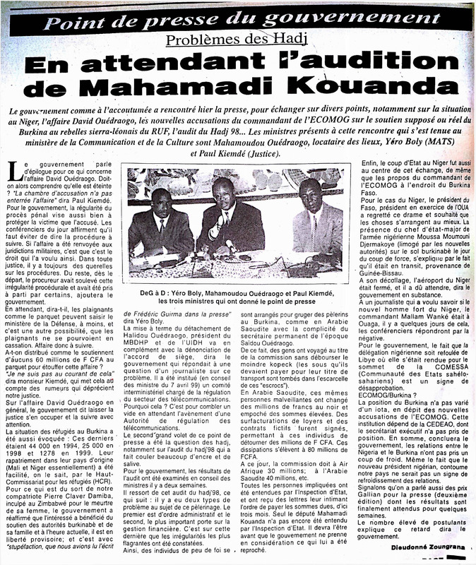 Point de presse du gouvernement. Problèmes des Hadj : en attendant l'audition de Mahamadi Kouanda