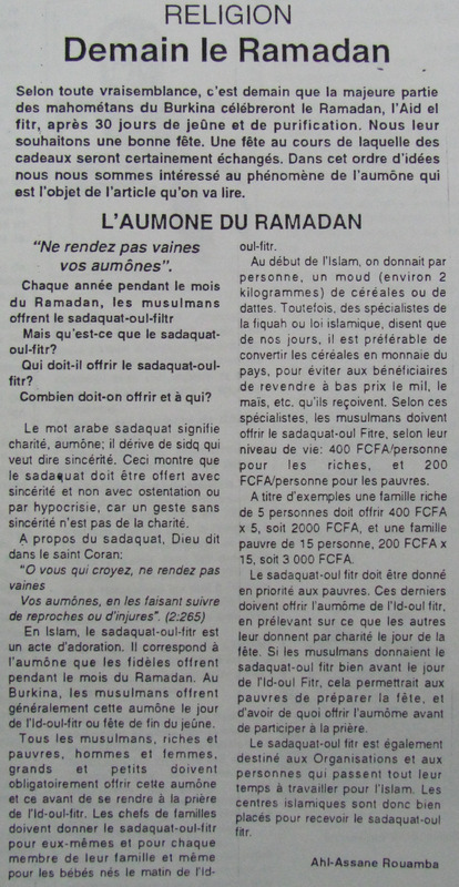 Newspaper articles from L'Observateur Paalga (1991-2021)