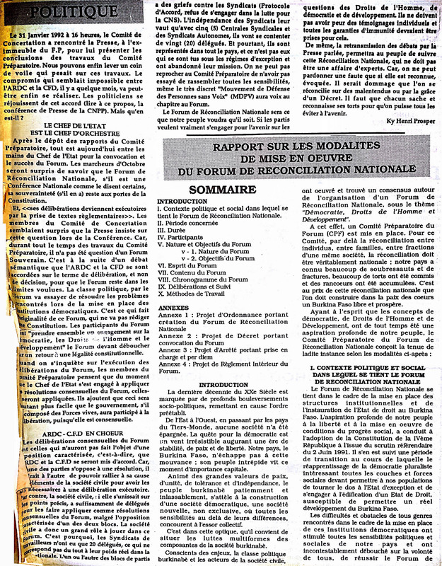 Rapport sur les modalités de mise en œuvre du forum de réconciliation nationale