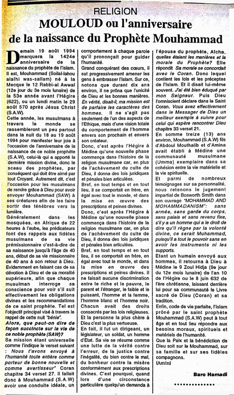 Religion : Mouloud ou l'anniversaire de la naissance du Prophète Mouhammad