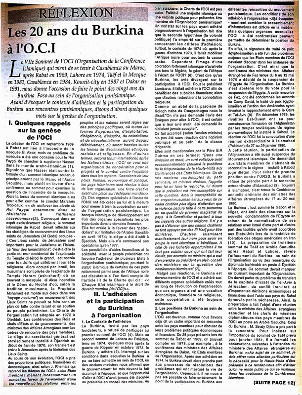 Réflexion : les 20 ans du Burkina à l'O.C.I.
