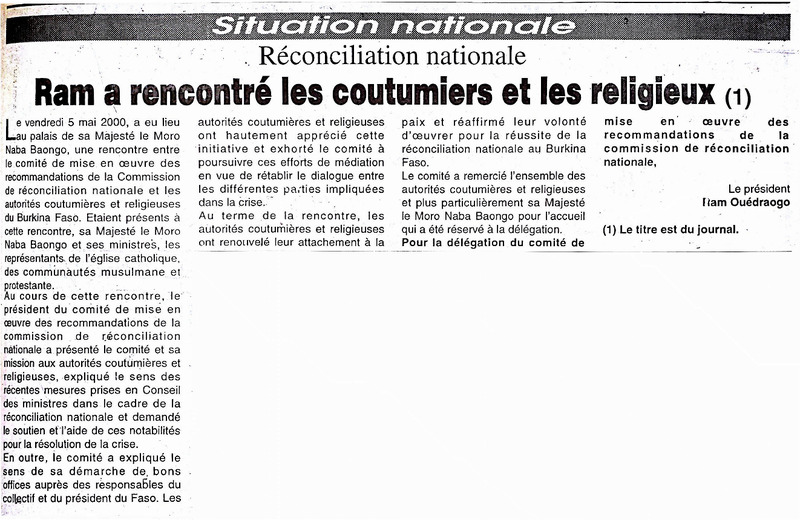 Réconciliation nationale : Ram a rencontré les coutumiers et les religieux