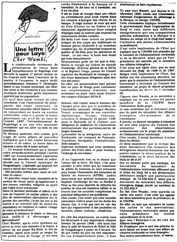 Une lettre pour Laye